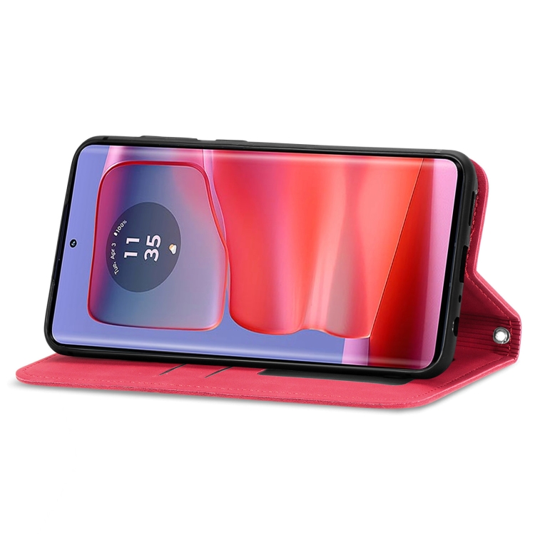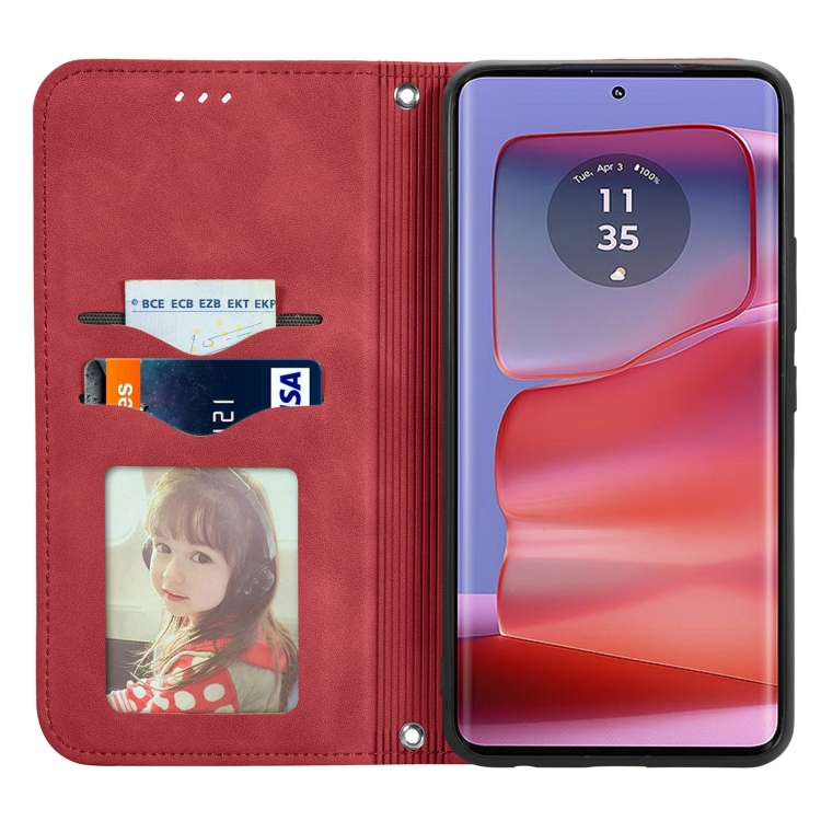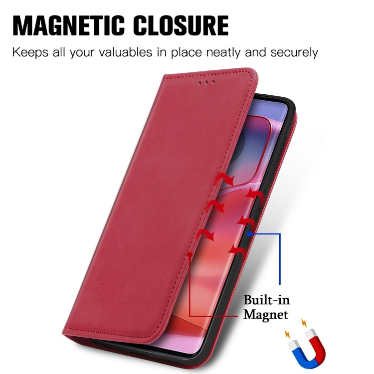 Funda de Cuero con Tapa Magnética para Motorola Edge 50 (Rojo)