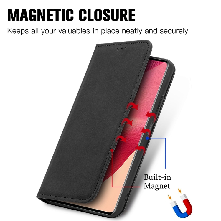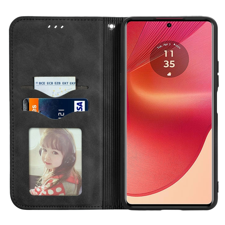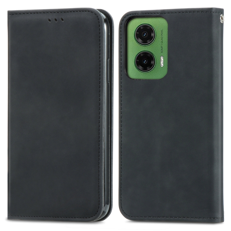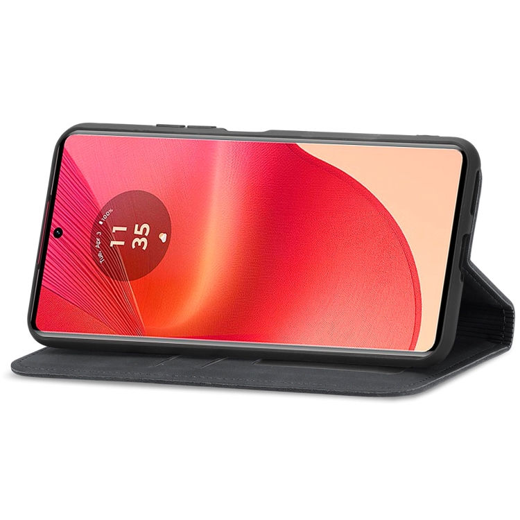Funda de Cuero con Tapa Magnética y Tacto Retro para Motorola Moto G35 (Negro)