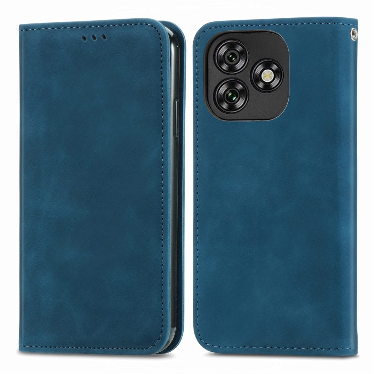 Funda de Cuero con Tapa Magnética y Tacto Retro para Oukitel C53 (Azul)