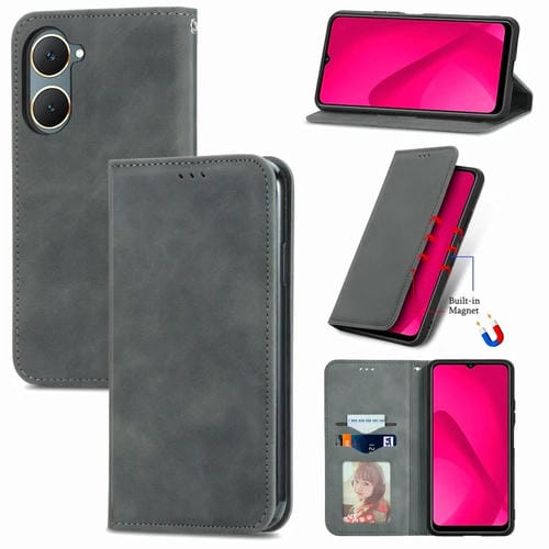 Funda de Cuero con Tapa Magnética y Tacto Retro para Vivo Y18E (Gris)