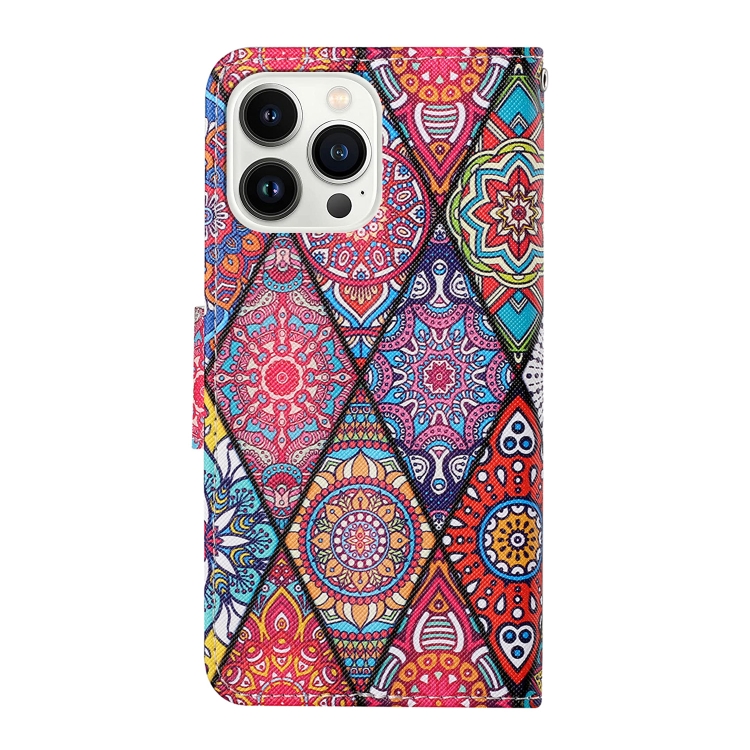 Funda de Cuero con Tapa para iPhone 16 Pro Dibujo en Color 3D (Tótem de Rombos)