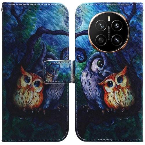 Funda de Cuero con Tapa para Honor Magic 7 con Dibujo a Color (Búho)