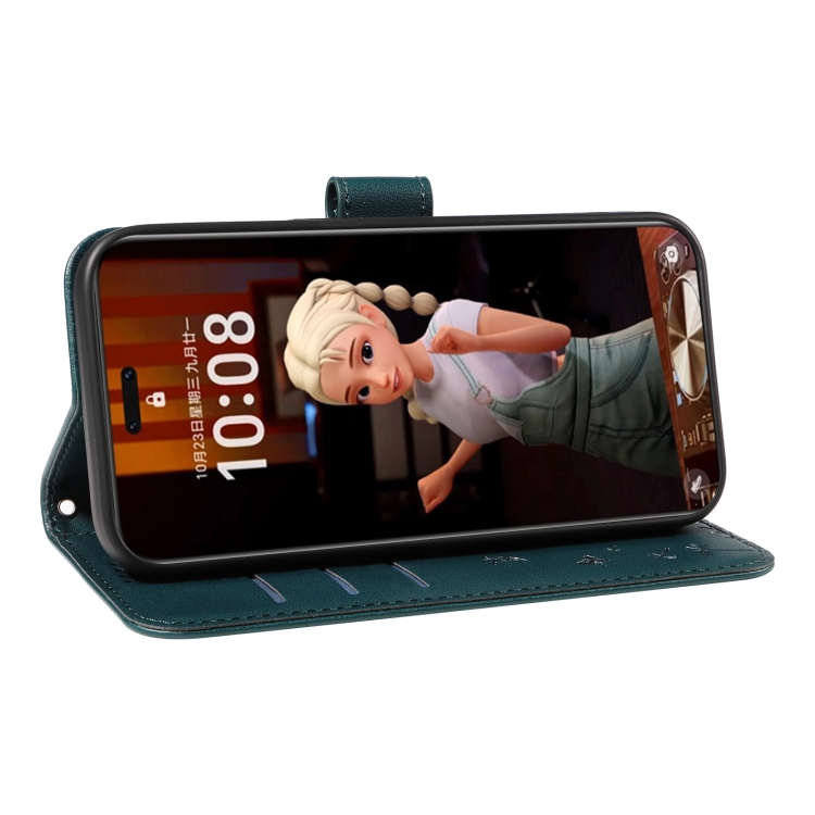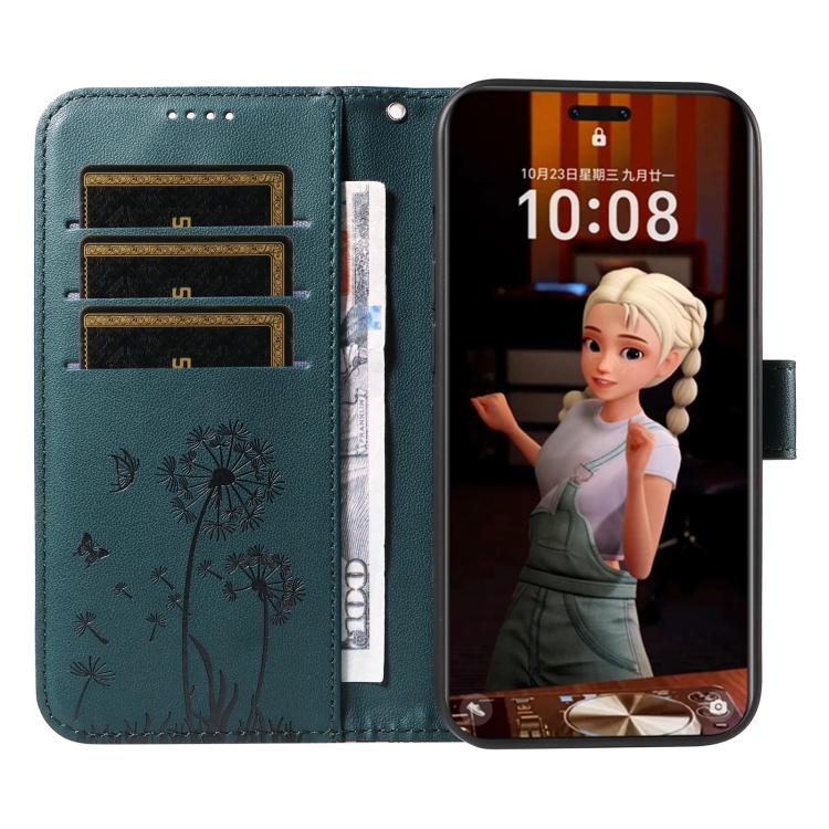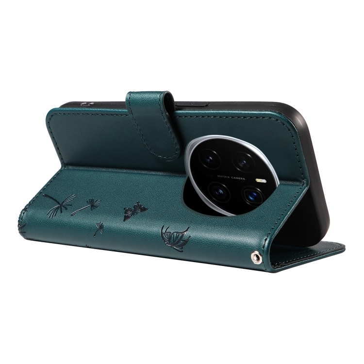 Funda de Cuero con Tapa y Estampado Diente de León en Relieve para Honor Magic7 Pro (Azul)