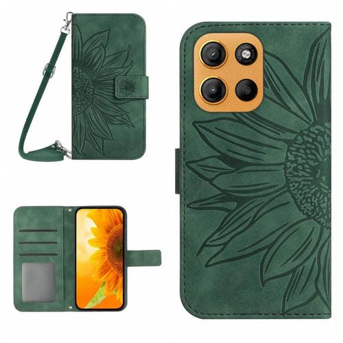 Funda de Cuero con Tapa para Motorola Moto G Stylus 5G 2025 Ht04 con Diseño de Girasol y Cordón (Verde)