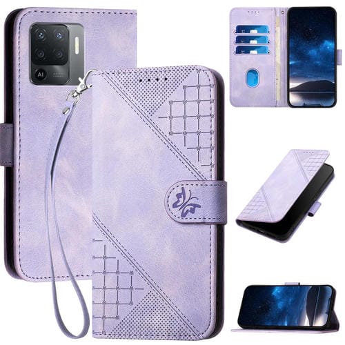 Funda de Cuero con Tapa para Teléfono Oppo A94 4G / F19 Pro 4G Yx0080 con Diseño En Relieve de Mariposa y Cuadrícula y Cordón (Morado Claro)