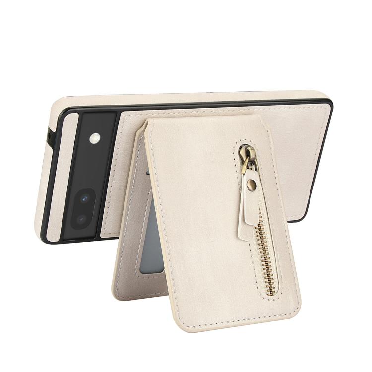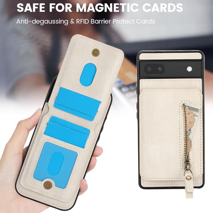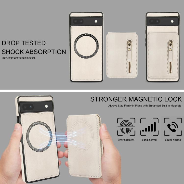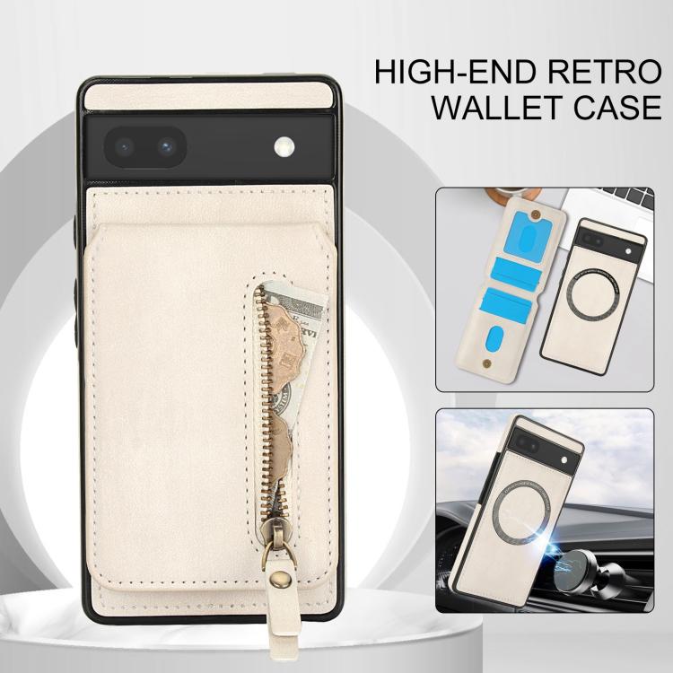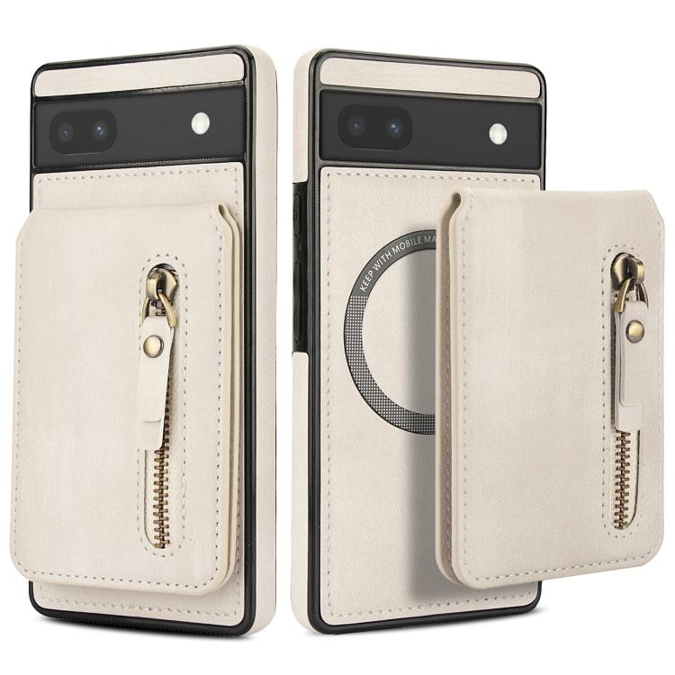 Funda de Cuero con Tapa Trasera Magsafe Dividida con Cremallera para Google Pixel 6 (Blanca)