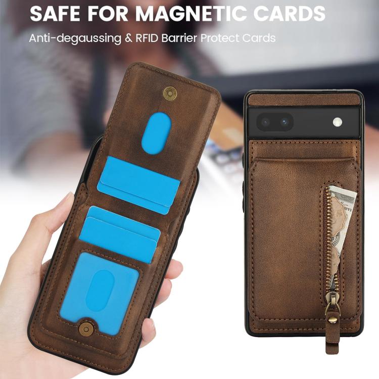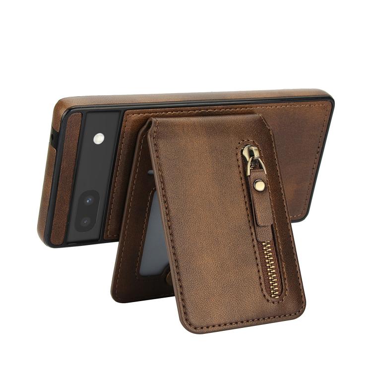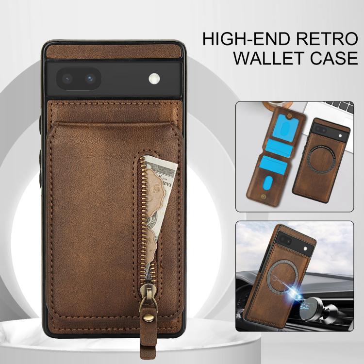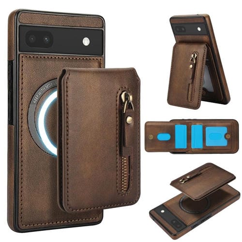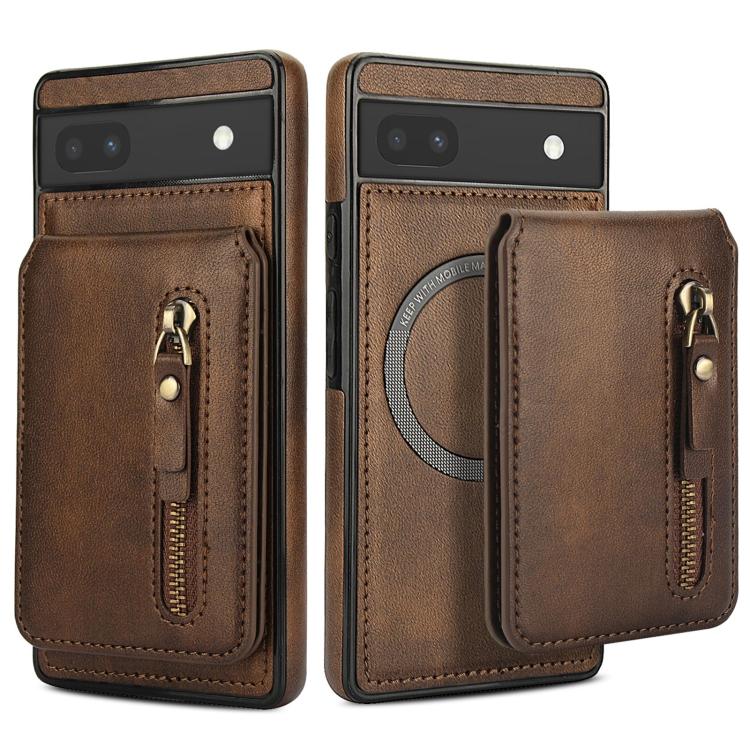 Funda de Cuero con Tapa Trasera Magsafe Dividida y Cremallera para Google Pixel 6 (Marrón)
