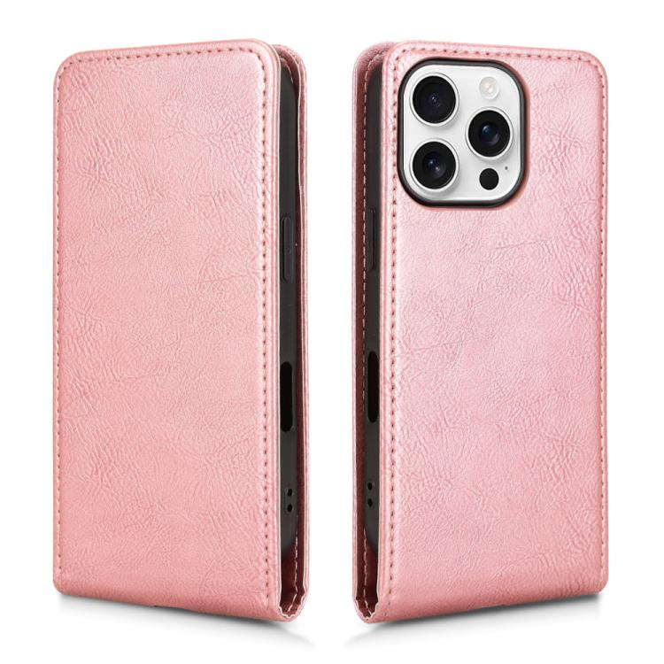 Funda de Cuero con Tapa Vertical Magnética para iPhone 16 Pro Max (Oro Rosa)