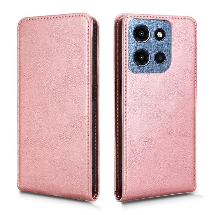 Funda de Cuero con Tapa Vertical Magnética para Motorola Moto G Power 2025 (Oro Rosa)