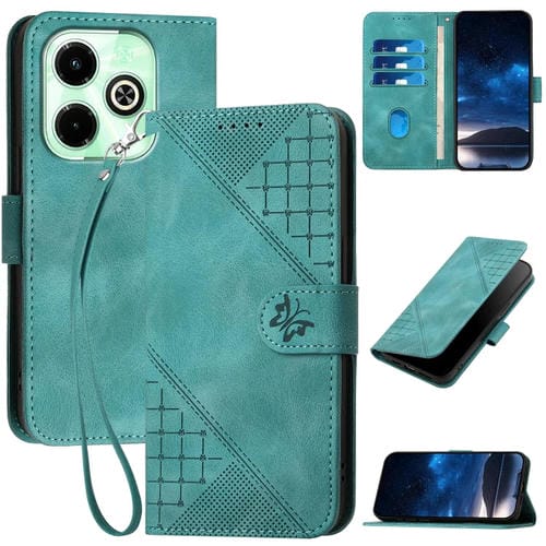 Funda de Cuero con Tapa y Cordón para Infinix Smart 8 Pro 4G Yx0080 con Diseño Relieve Mariposas (Azul Claro)