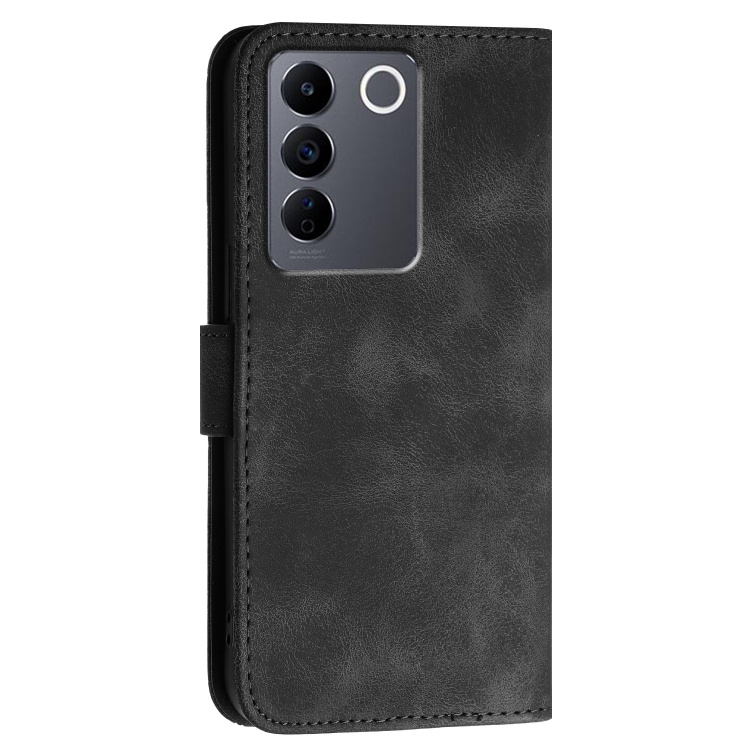 Funda de Cuero con Tapa y Cordón para Vivo V27 5G Global Yx0080 con Diseño En Relieve de Mariposa y Cuadrícula (Negro)