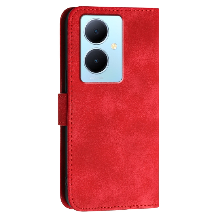 Funda de Cuero con Tapa y Cordón para Vivo Y78+ 5G Global / V29 Lite Yx0080 con Diseño En Relieve de Mariposa y Cuadrícula (Rojo)