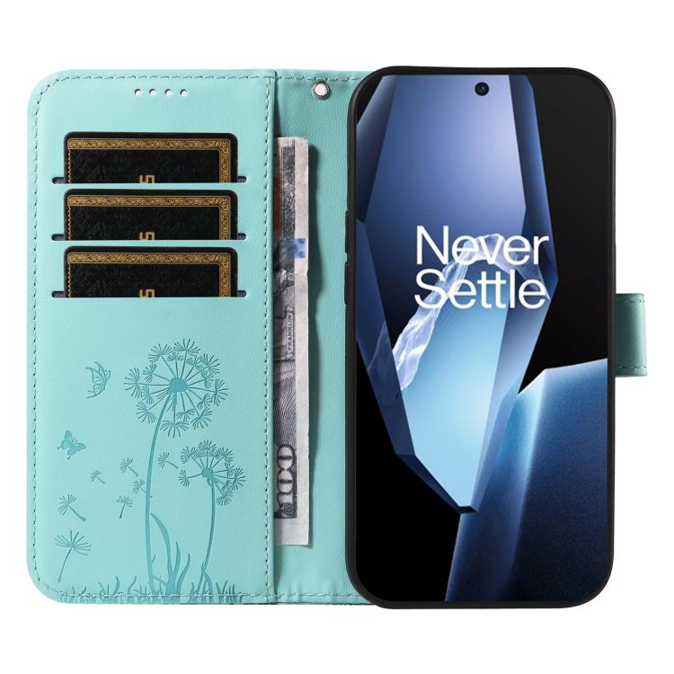 Funda de Cuero con Tapa para OnePlus 13R 5G Diseño Diente de León (Verde)