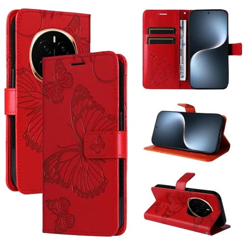 Funda de Cuero con Tapa y Mariposa en Relieve 3D para Honor Magic7 5G (Rojo)