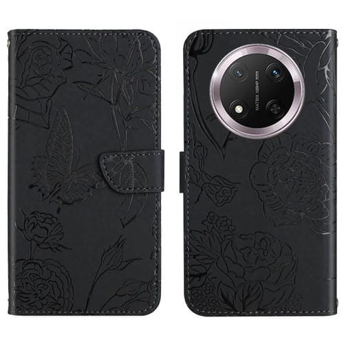 Funda de Cuero con Tapa y Mariposas en Relieve para Honor X9C Ht03 (Negro)