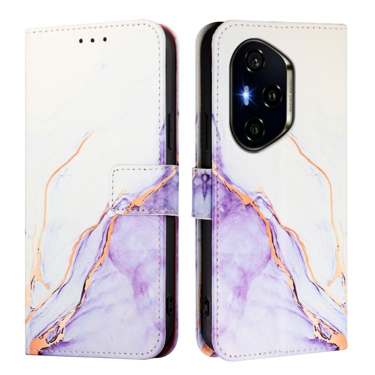 Funda de Cuero con Tapa y Diseño de Mármol para Honor 300 Pro/300 Ultra Pt003 (Blanco y Morado)
