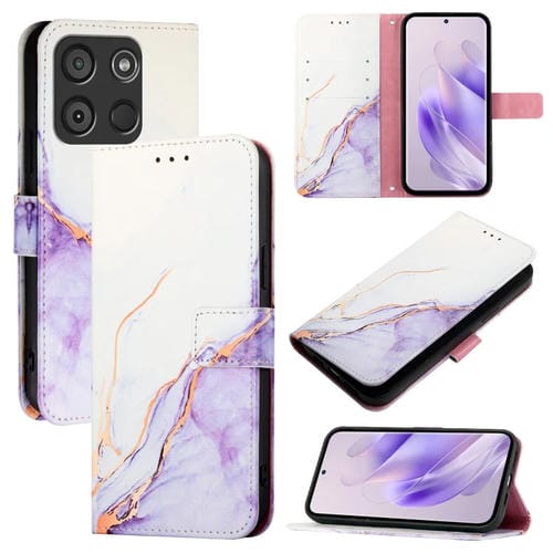 Funda de Cuero con Tapa y Diseño Mármol Pt003 para Teléfono Itel A60/A60S (Blanco y Morado)