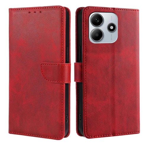 Funda de Cuero con Tapa y Hebilla con Textura de Piel de Becerro para Redmi Note 14 5G (Rojo)