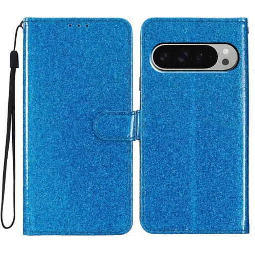 Funda de Cuero con Tapa y Purpurina en Polvo para Google Pixel 9/9 Pro (Azul)