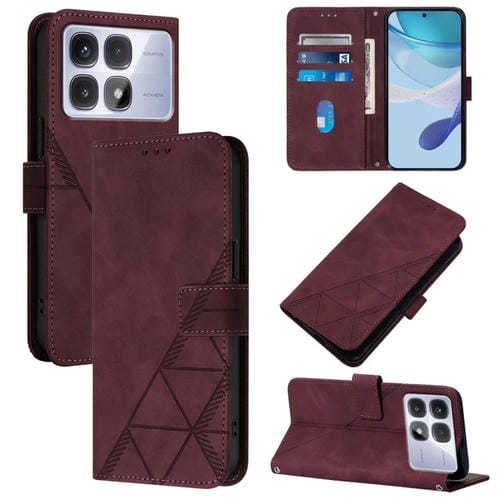 Funda de Cuero con Tapa y Relieve 3D para Redmi K70 Ultra 5G Global Crossbody (Rojo Vino)