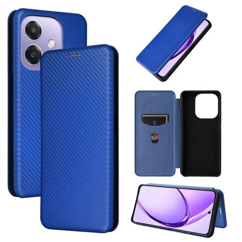 Funda de Cuero con Tapa y Textura de Fibra de Carbono para Oppo A3X 5G (Azul)