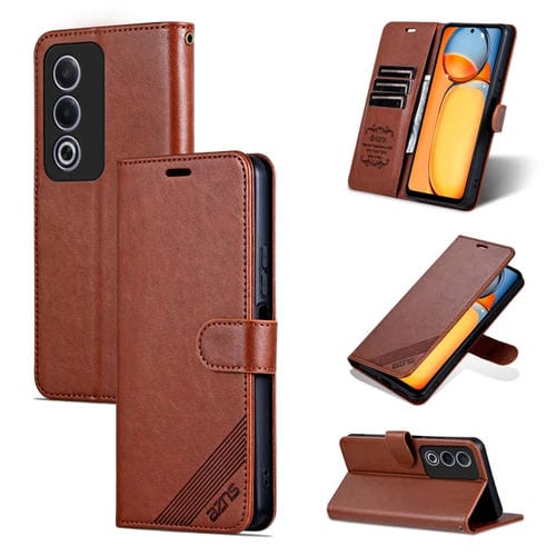 Funda de Piel de Oveja con Tapa Azns para Oppo K12X 5G Global (Marrón)