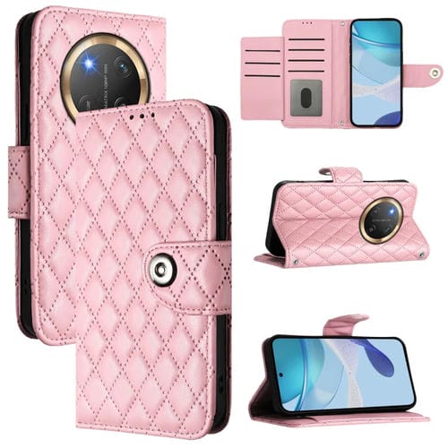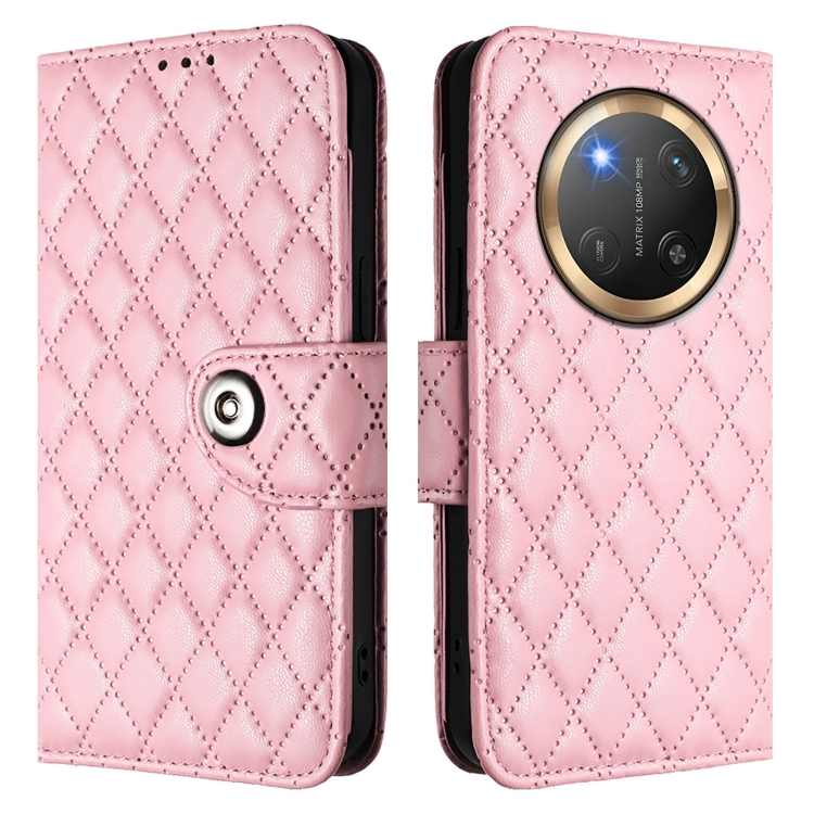 Funda de Cuero con Tapa y Cordón para Honor X9C 5G con Textura Rómbica (Rosa)