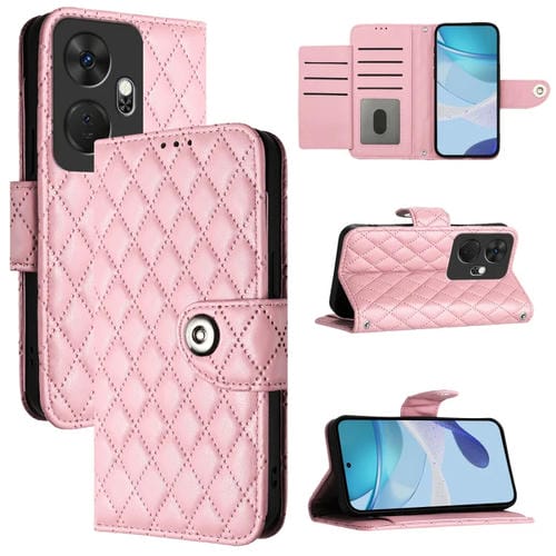 Funda de Cuero con Tapa y Textura Rombal para Itel P55+ con Cordón (Rosa)