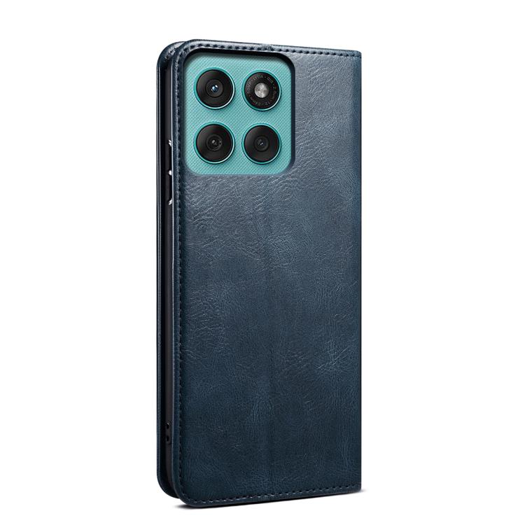 Funda de cuero con textura Crazy Horse y cera de aceite para Motorola Edge 60 (azul)
