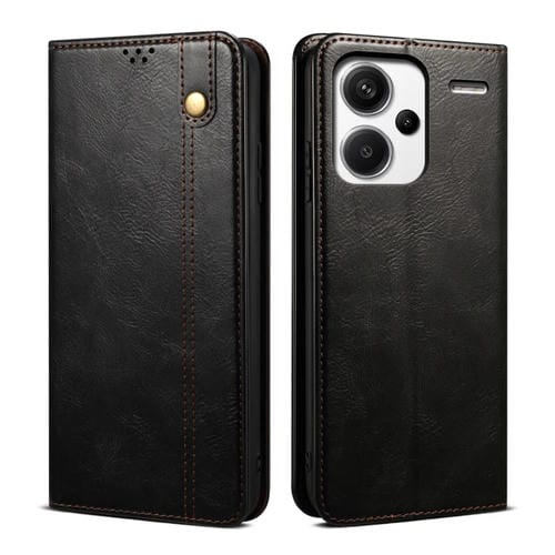 Funda de Cuero con Textura Crazy Horse y Cera de Aceite para Redmi Note 13 Pro+ (Negra)