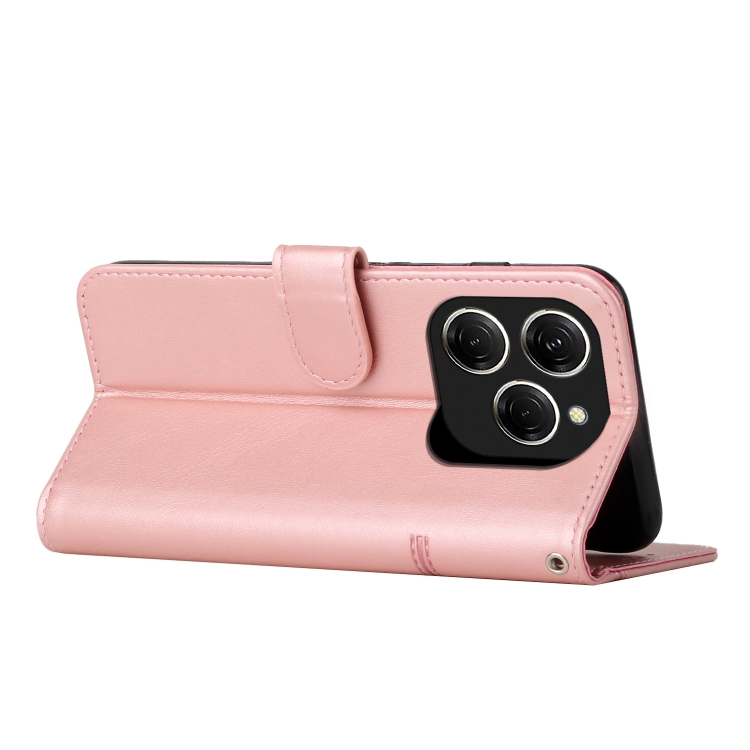 Funda de Cuero Textura Becerro con Hebilla para Tecno Spark 20 Pro 5G (Oro Rosa)