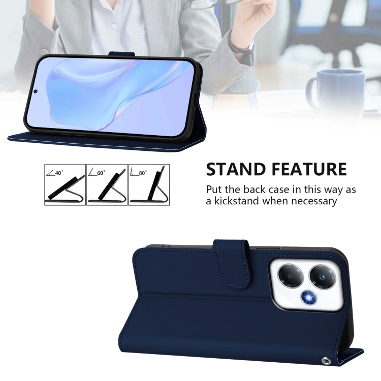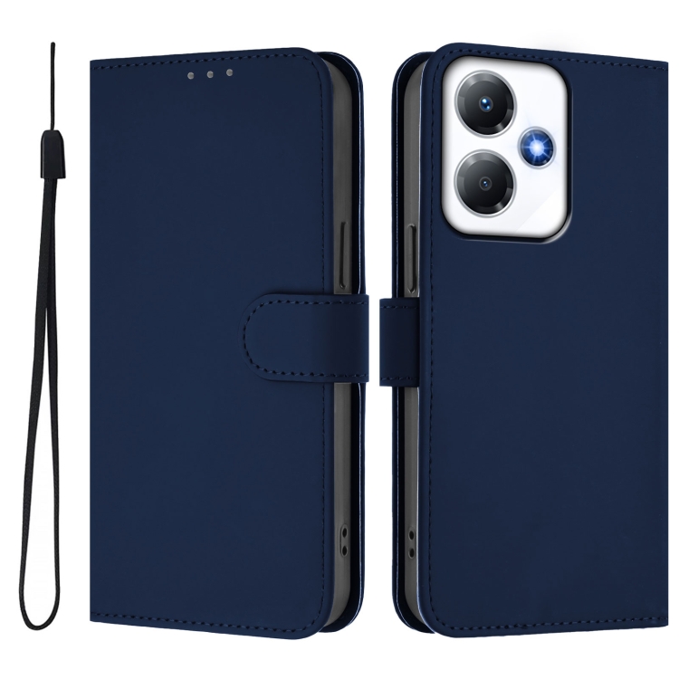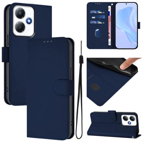 Funda de Cuero con Textura y Cordón para Infinix Hot 30 Play NFC 4G (Azul Marino)