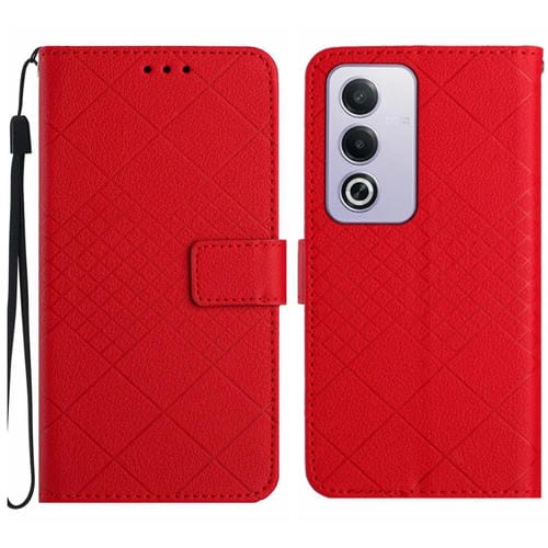 Funda de Cuero con Textura de Cuadrícula Rómbica Global para Oppo A80 Eu / A3 Pro (Roja)