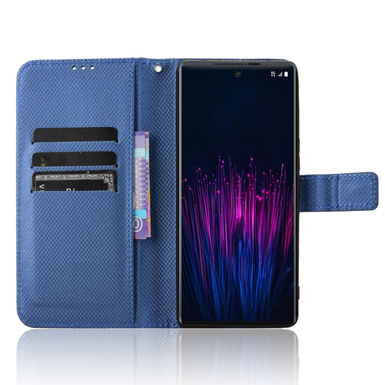 Funda de Cuero con Textura de Diamante para HTC U24 Pro (Azul)