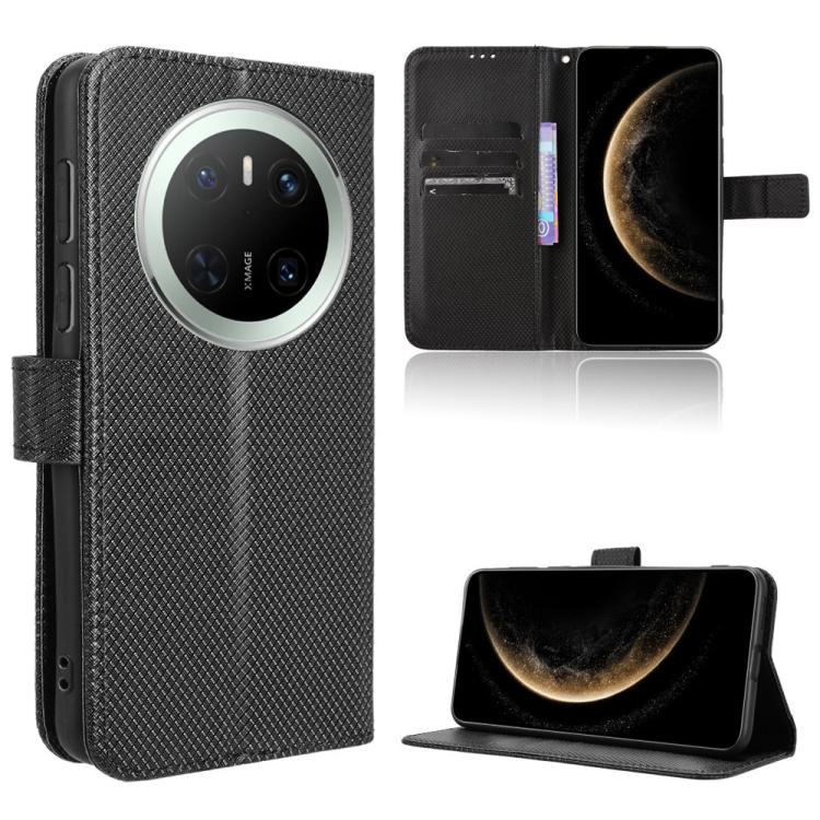 Funda de Cuero con Textura de Diamante para Huawei Mate 70 (Negra)