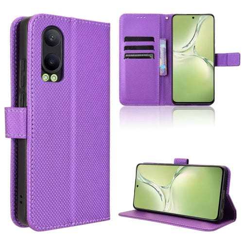 Funda de Cuero con Textura de Diamante para Oppo K12X 5G / Oneplus Nord Ce4 Lite 5G (Morado)