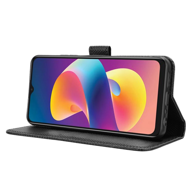 Funda de Cuero con Textura de Diamante para Teléfono TCL 50 Le (Negro)