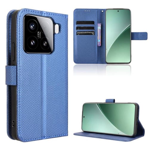Funda De Cuero Con Textura De Diamante Para Xiaomi 15 (Azul)