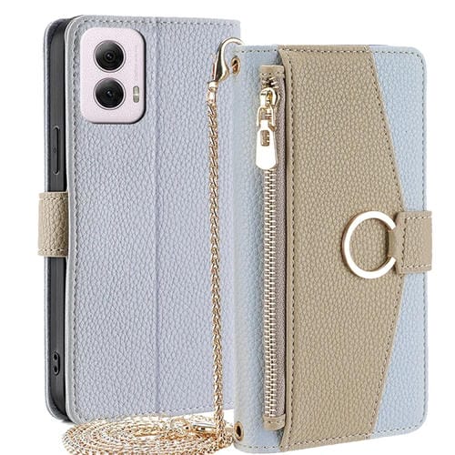Funda de Cuero con Textura de Lichi Cruzada para Motorola Moto G Power 5G (2024) (Azul)