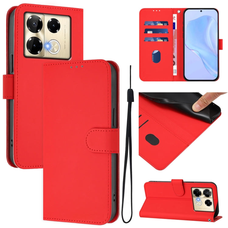 Funda de Cuero Textura Piel para Infinix Note 40 Pro 4G con Cordón (Rojo)