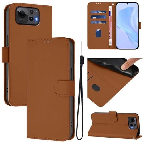 Funda de Cuero con Textura de Piel y Cordón para Asus Zenfone 12 Ultra (Marrón)