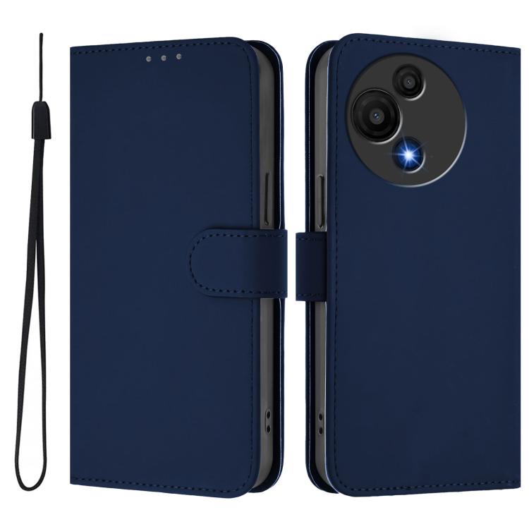 Funda de cuero con textura de piel y cordón para TCL 605/60 SE (azul marino)
