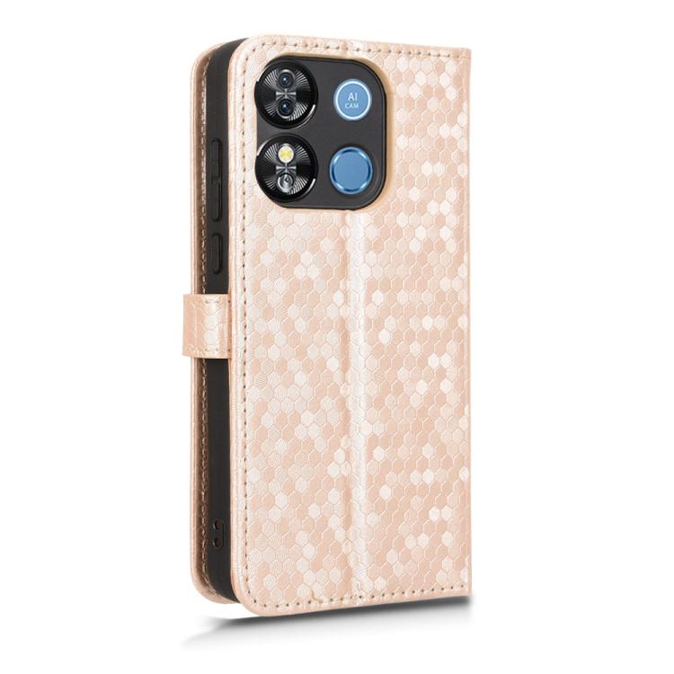 Funda de Cuero para Oukitel C57S con Textura de Puntos en Panal (Dorada)