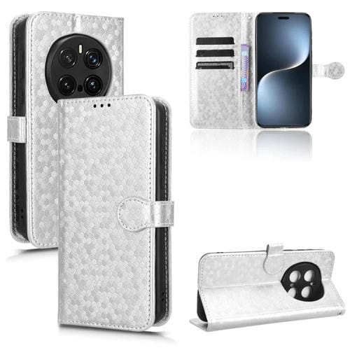 Funda de Cuero con Textura de Puntos en Forma de Panal para Honor Magic7 Pro 5G (Plateada)