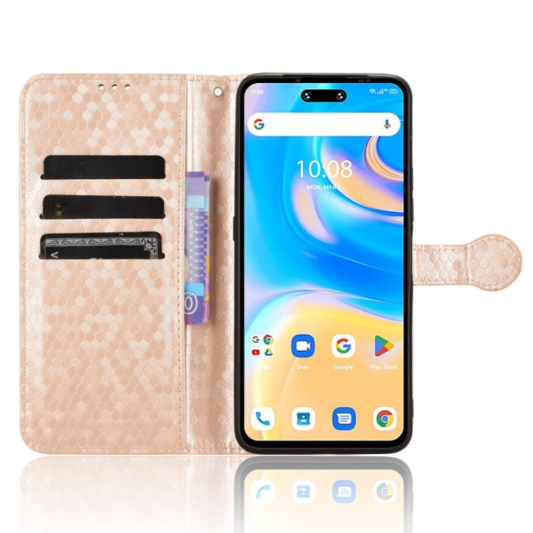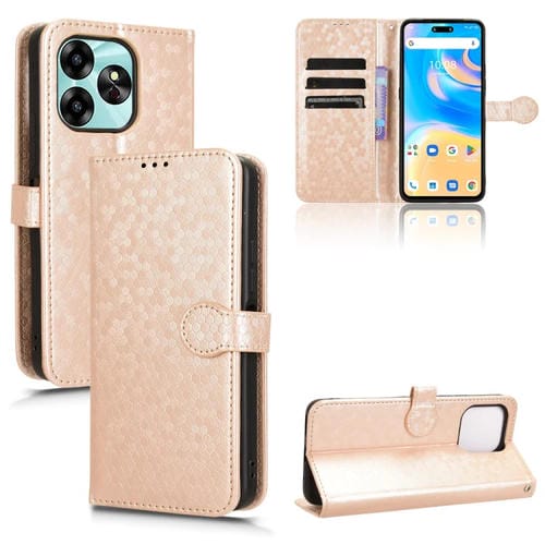 Funda de Cuero para Umidigi G6 5G con Textura de Puntos Panal (Dorada)