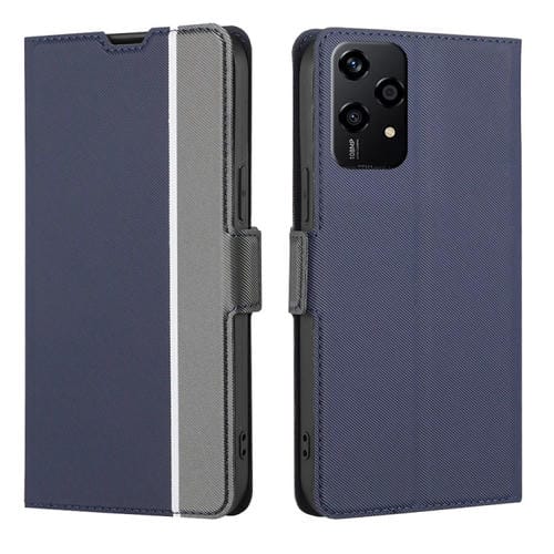 Funda de Cuero Honor 200 Lite 5G con Textura de Sarga y Botones Laterales (Azul)