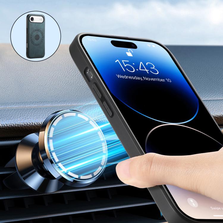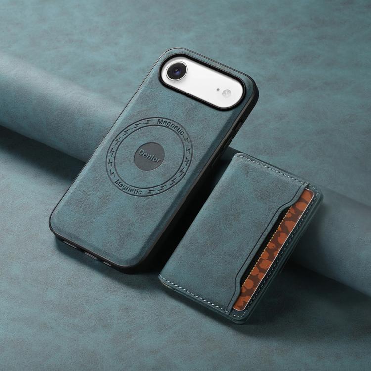 Funda de cuero con textura retro para iPhone Air Denior D13, con tarjetero MagSafe (azul)