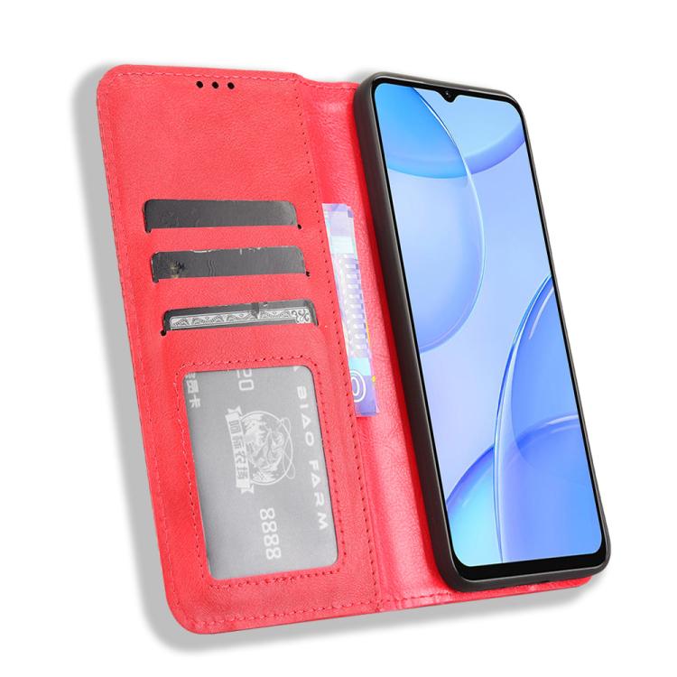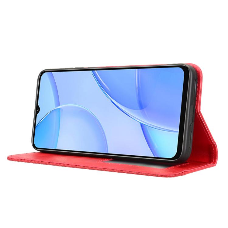 Funda de Cuero Oukitel C57S con Textura Retro y Hebilla Magnética (Roja)