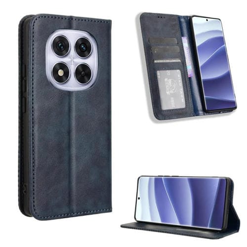 Funda de Cuero con Textura Retro y Hebilla Magnética para Redmi Note 14 Pro+ 5G (Azul)