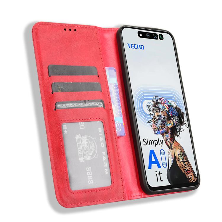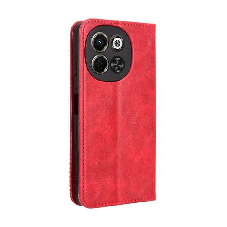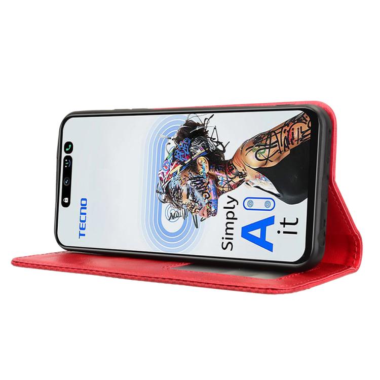 Funda de Cuero para Tecno Pova 6 Neo 5G y Spark 30 5G con Textura Retro y Hebilla Magnética (Rojo)